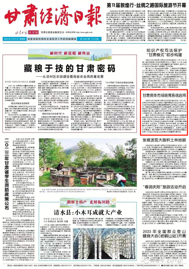 新甘肃客户端兰州讯(新甘肃·甘肃经济日报记者 苏海琴)4月26日,甘肃资本市场培育系统启用仪式暨专题培训会在兰州举行。本次活动由甘肃省地方金融监督管理局联合甘肃省工业和信息化厅、中国证券监督管理委员会甘肃监管局、深圳证券交易所、甘肃股权交易中心共同举办,旨在进一步优化我省资本市场生态和营商环境,强化金融科技与资本市场深度融合,共同做好企业上市培育工作,从源头提升上市公司质量。