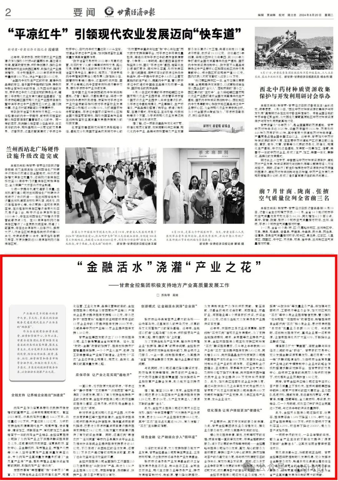 作为全省国有金融资本投资、融资和管理中心,今年以来,甘肃金控集团认真贯彻落实省委省政府各项决策部署,聚焦主责主业,充分发挥多业务板块协同优势,综合运用证券、投资、基金、征信、融资租赁和要素市场等金融手段,积极打造多元化、多层次、多渠道的投融资服务体系,以金融活水浇灌产业之花。
